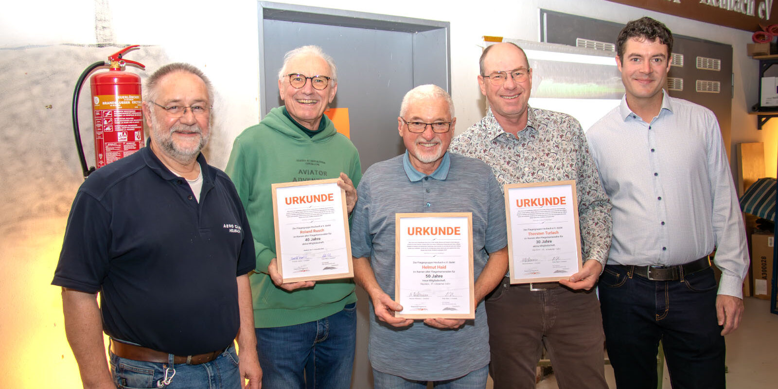 Ein Höhepunkt des Abends war die Ehrung langjähriger Mitglieder, ein fester Bestandteil unseres Almabtriebs. Helmut Haid wurde für 50 Jahre Mitgliedschaft ausgezeichnet – eine beeindruckende Zahl, die den tiefen Zusammenhalt und die Beständigkeit in unserem Verein zeigt. Roland Rusch wurde nachträglich für seine 40-jährige Mitgliedschaft geehrt, da er im letzten Jahr nicht anwesend sein konnte. Besonders hervorgehoben wurde auch Thorsten Turlach, der auf 30 Jahre Mitgliedschaft zurückblickt. Während seiner Zeit als Vorstand hat er an wichtigen Projekten wie der Anschaffung der Super Dimona und der FK9 mitgewirkt – Verdienste, die auch heute noch spürbar sind. Jochen Heinzmann, ebenfalls seit 30 Jahren im Verein, konnte leider nicht dabei sein, wird aber sicherlich noch nachträglich gewürdigt.